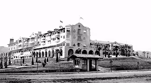 The Beverly Hills Hotel in 1918 with a Pacific Electric station out front. The hotel was designed by architect Elmer Grey