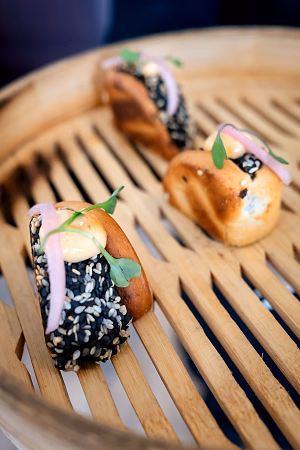 Mushroom bao with black sesame - a hearty Asian appetizer for vegetarians!