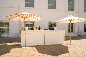 White bars setup on the plaza for cocktail hour service